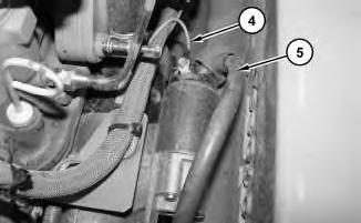 4. Disconnect harnessassemblies(4) and (5) . Remove bolts (6) and remove electric starting motor (7) .