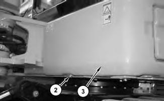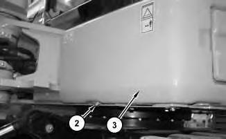 26. Open the side hood and install cover (2). Install bolts (3). Install bolt (1) .
