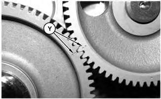 1. Ensure that Timing Marks (Y) on the idler gear and the camshaft gear are aligned. Refer to illustration 1.
