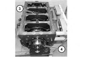 7. Install crankshaft (4). Install three bolts (3). Tighten bolts (3) to a torque of 69 to 73 N·m (51 to 54 lb ft).