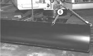 4. Attach a suitable lifting device to blade (6). Position the blade on the undercarriage frame.