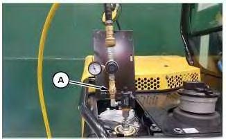 2. Install Tooling (A) onto the hydraulic tank. Attach an air supply hose onto Tooling (A). Apply 138 kPa (20 psi) to pull a vacuum on the hydraulic system.