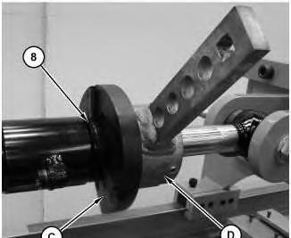 13. Use Tooling (C) and Tooling (D) to tighten cylinder head (8). Refer to Table 3 for the correct torque specification for cylinder head (8).