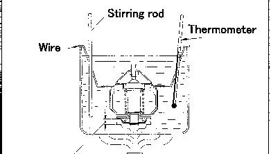 * Stir the water using a stirring rod to maintain an even water temperature in the container, then conduct the tests indicated below.