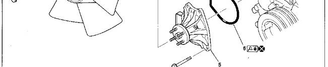 * The water pump pulley is driven by two belts. Always replace the two belts simultaneously to ensure that both belts have the same tension.