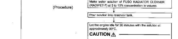 * If you accidentally splash FUSO DIESEL LONGLIFE COOLANT, FUSO ANTIFREEZE, OR RADIATOR ANTIRUST (RADIPET 9) in your eyes, wash it out immediately with water and seek medical attention.