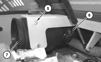 5. Disconnect hose (6). Remove bolts (5) and air cleaner housing (7) .