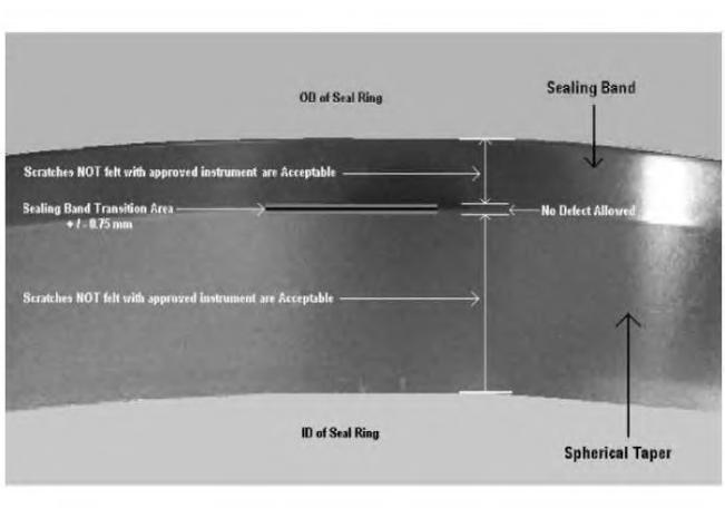 Seal Ring Face - Flat Band - Complete a visual inspection to verify that no contamination or damage in the form of, but not limited to: scratches or large chips are present. Refer to Illustration 6.