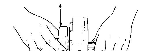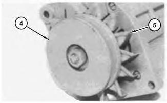 3. Install slip ring (5) on the rotor. Connect and solder the rotor leadsto the slip ring (5). Install rear bearing (4) .