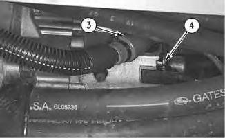 3. Replace air cleaner cover (3) and secure cover (3) with three clips (2). Tighten the hose clamp (1) .