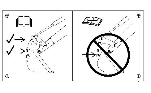 Improper bucket pin connection can cause machine damage. Make sure the bucket pins are connected properly.