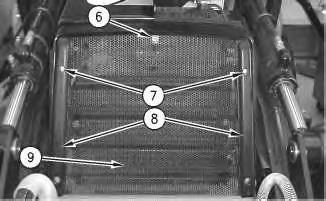 1. Install grill (9) and bolt (6). Install supports (8) and bolts (7) .