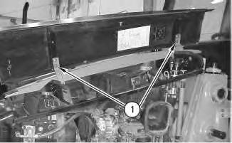 1. Open the hood and remove bolts (1). Remove the left side of the hood.
