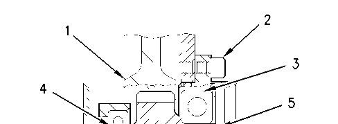 1. Inspect the condition of the teeth and the splines of the gear (5), the bearings (3 and 4), the circlip (6), and the groove for the circlip in the front housing (8) for wear and for damage. Replace any worn component or any damaged component.