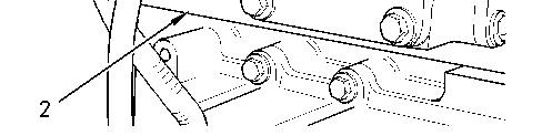 5. Install the setscrew (1) and the washer on the camshaft gear (2). Tighten the setscrew to a torque of 95 N·m (70 lb ft).