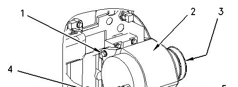 1. Disconnect the harness assembly from the boost pressure sensor. Remove the boost pressure sensor (1) from the cylinder head (2).