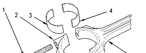 1. Install the upper connecting rod bearing (4) in the connecting rod. The upper connecting rod bearing must be centered in the connecting rod. Lubricate the bearing face with clean engine oil.