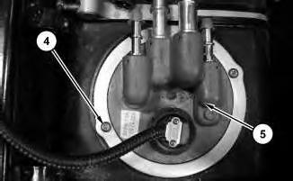5. Remove screws (4) and the plate. Remove diesel exhaust fluid filter (5).