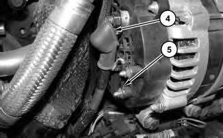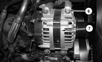 4. Remove bolts (6) and alternator (7).