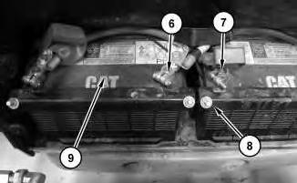 4. Remove hold down brackets (8). Remove all negative ground cables (6) first, then remove positive cables (7). Remove batteries (9).