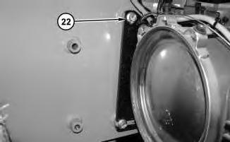 1. Attach a suitable lifting device to diesel particulate filter (21) . The weight of diesel particulate filter (21) is approximately 50 kg (110 lb). Remove bolts (22) . Remove diesel particulate filter (21) .