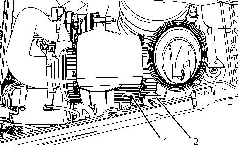 8. Remove the oil filler cap (2). Fill the crankcase with new oil. Refer to Operation and Maintenance Manual, "Lubricant Viscosities" and Operation and Maintenance Manual, "Capacities (Refill)". Clean the oil filler cap and install the oil filler cap.