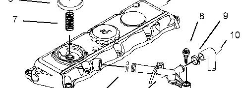 6. Install the spring (7), the cap (6), and a new diaphragm (4).