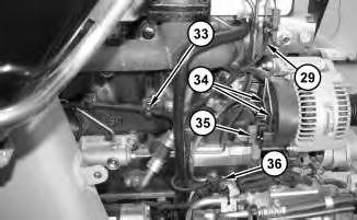 23. Connect cable assemblies (38) to the starter. Tighten the nut that secures cable assemblies (38) to a torque of 21 卤 4 N路m (15 卤 3 lb ft).
