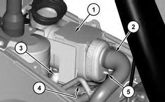 2. Disconnect hoses (2), (3), and (5) .