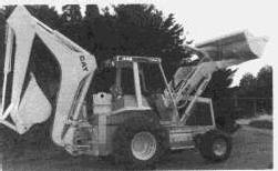 Move the backhoe to the "transport position" when using the loader. Also when traveling on a road.