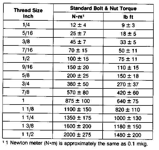 Thefollowingchartsgivegeneraltorquesforbolts,nutsandtaperlock studsofSAEGrade5orbetterquality.