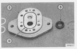 9. Put flange (8) on bench with the face that has the seat for seal (18) on top. Drive the lip-type seal (9) from the flange.