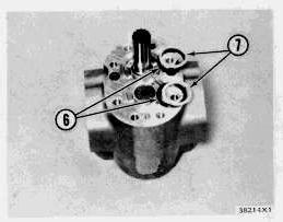 Oil from the primary pump goes to inlet (2). The orifice pushed in the bore at inlet (2) is the control for oil pressure to the diverter spool. Each model of the diverter valve (used on the several machines) must have an orifice of the correct size. With an orifice that is the wrong size, the performance of the supplemental steering system will not be good enough.