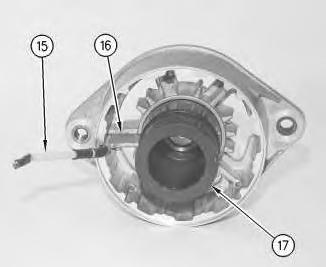 18. Remove the lead for the field winding (15) and the field winding (17) .