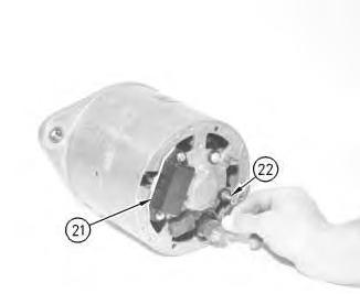 21. Disconnect the three leads for the stator windings (24) from the three rectifier bridge terminals (21).