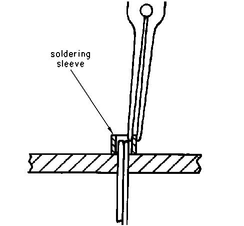 When unsoldering the "R" terminal in the next step, do not grip both of the outside edges of the sleeve. The sleeve will collapse with too much pressure. While heating with the soldering iron, grip the edge with long nose pliers.