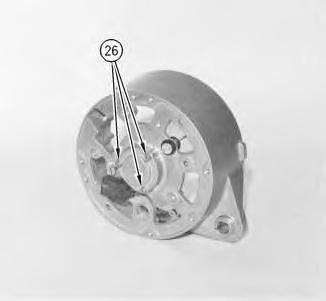26. Remove the following components: rectifier, washers for the rectifier terminal and insulators.