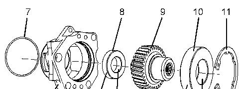 a. Inspect the condition of the teeth and the splines of gear (6) for wear and damage. Inspect bearing (7) circlip (8) and circlip (9).