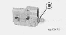 If the backhoe frame is to be put in a horizontal position, give support to the stabilizer cylinder rod at the bottom of the backhoe frame. Failure to do so will cause distortion of plate (1).