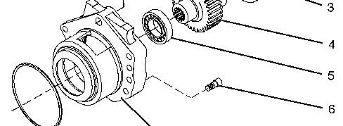 a. Inspect the condition of the teeth and the splinesof gear (4) for wear or damage. Inspect bearings (3) and (5), circlip (2), and the front housing for wear or damage. Replace any componentsthat are worn or damaged.