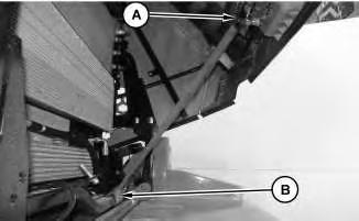 Connect the steering frame lock link between the front and rear frames before working on machine. Secure clevis pin with locking pin.