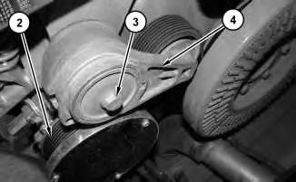 4. Remove belt (2). Refer to Operation and Maintenance Manual, "Belts - Inspect / Adjust / Replace".