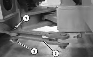 1. Remove locking pin (2) and pin (1). Move steering frame lock (3) to the storage position.
