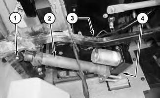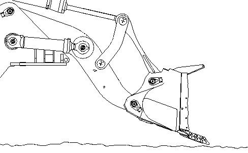 4. Position the bucket or work tool just above the ground at a slight downward angle. This position will ensure that the head end of the lift cylinders is pressurized.