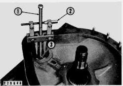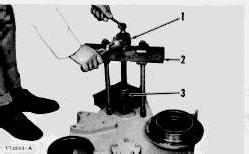 1. Screw. 2. Bearing cup puller attachment. 3. Step plate.