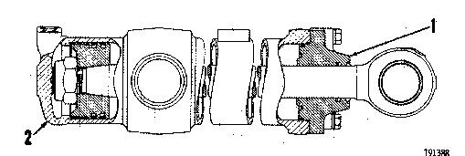 Oil leakage between the rod and the hydraulic cylinder packing can be the result of worn, cut, and/or distorted packing. Leakage can often be stopped by removing shims (2) located between retainer (1) and the cylinder head; this will allow the packing to be compressed against the rod when the retainer is tightened.