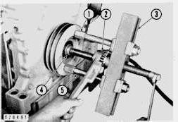 1. Bearing puller attachment. 2. Forcing screws.