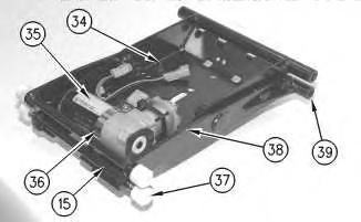 9. Install scissor assembly (5) into lower housing (14). Install two tether belts (10).