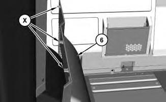 4. Remove holder (10). Remove four screws (8). Fold floor mat (9) out of the way. Carefully remove panel (6). There are three locking tabs (X) at the top on the opposite side of panel (6). Disconnect the harness assembly for auxiliary power port (7).