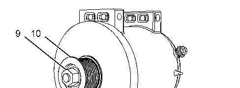 7. Remove nut (9) and remove pulley (10) .